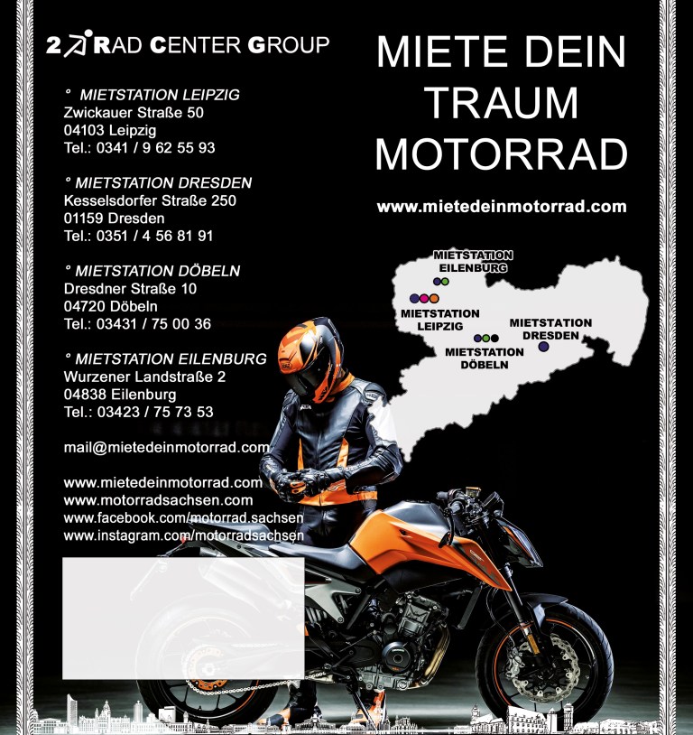 … und bieten Dir deinen kompletten Service aus einer Hand. Deine Sicherheit und dein Fahrspaß stehen bei uns an erster Stelle. Man mietet schließlich dort seine Motorräder, Roller und Quads, wo man auch mit vollster Zufriedenheit kaufen würde. Wir stehen für 25 Jahre kompetente Beratung und Betreuung und sind autorisierten Markenfachhändler mit zuverlässigem Werkstattservice. MIETEDEINMOTORRAD.com ist Dein größter Motorradvermieter in Deiner Region, in Sachsen!