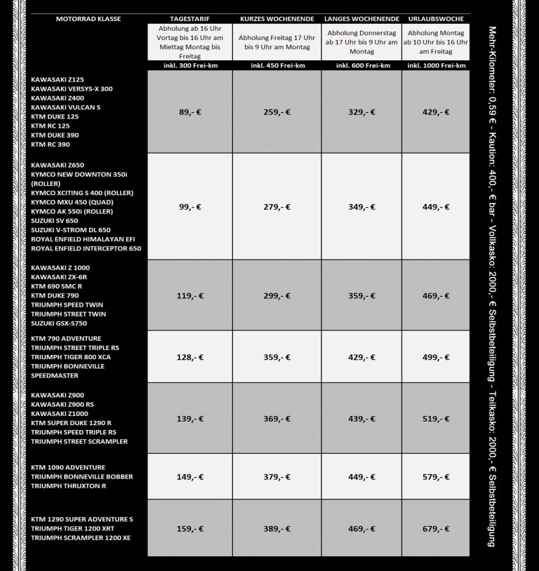 Bei MIETEDEINMOTORRAD.com findest Du Dein Motorrad-Vergnügen, egal ob Du Neu- oder Wiedereinsteiger bist, oder Dir einfach mal ein anderes Modell auf Zeit gönnst.
